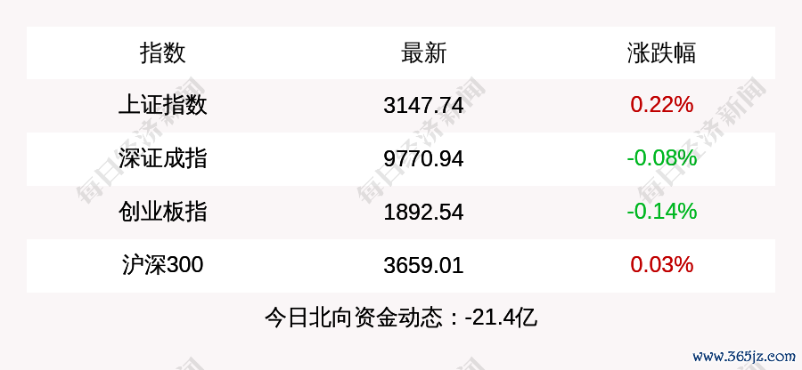 每经AI快讯:北京时间5月7日15:00,上证指数收盘上涨7.02点,涨幅为0.22%,报收3147.74点,成交额4269.52亿元;深证成指收盘下跌8.27点,跌幅为0.08%,报收9770.94点,成交额5417.42亿元;创业板指收盘下跌2.67点,跌幅为0.14%,报收1892.54点,成交额2367.65亿元;沪深300收盘上涨1.13点,涨幅为0.03%,报收3659.01点,成交额2473.68亿元。北上资金当日净流出21.4亿元。